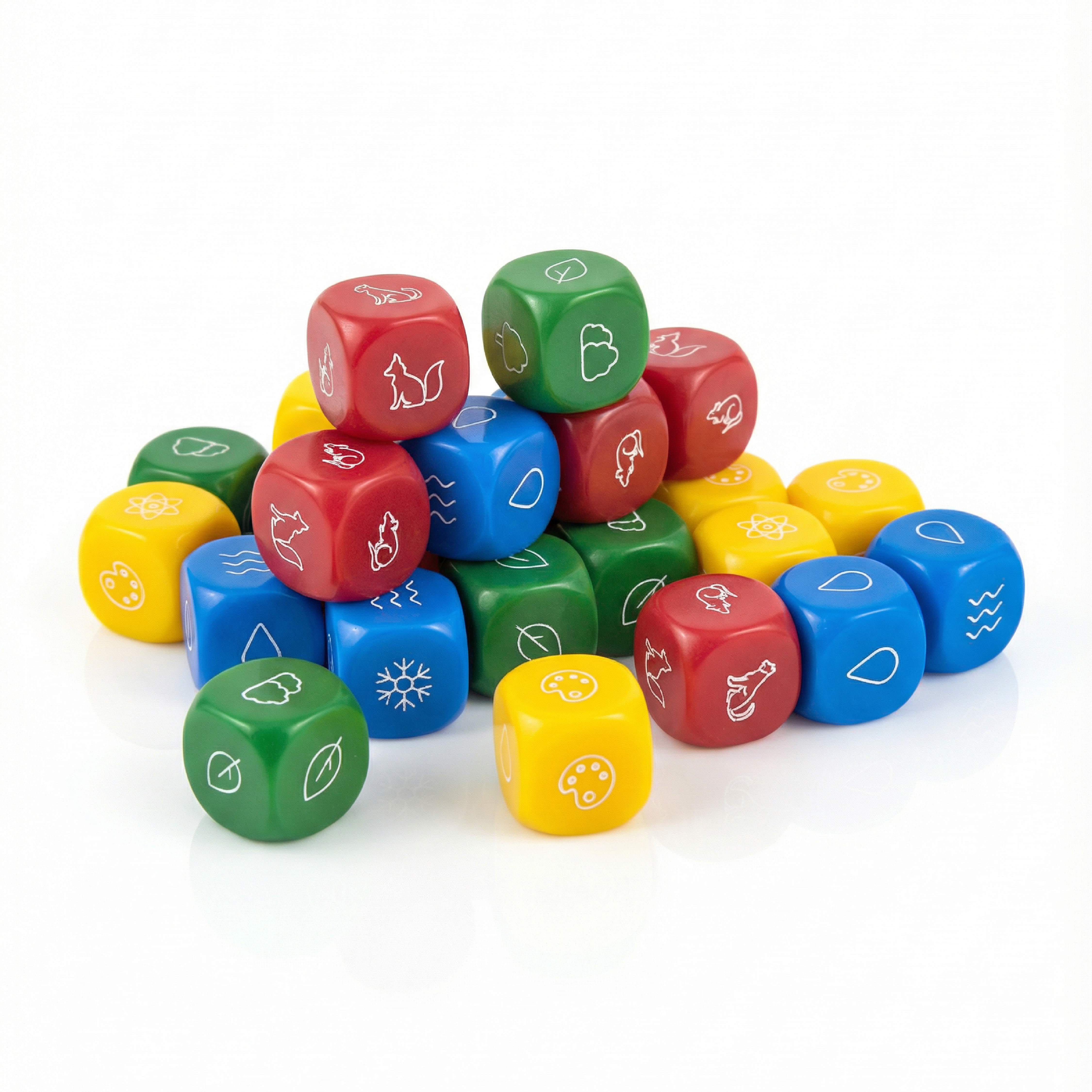 Importante: Estos dados están diseñados exclusivamente para el juego Quillén. Sus símbolos no son estándar, por lo que no sirven para otros juegos.
